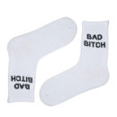 Beyaz BAD BITCH Yazılı Desenli Çorap