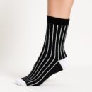 Siyah Beyaz Dik Çizgili Desenli Çorap - Görsel 2