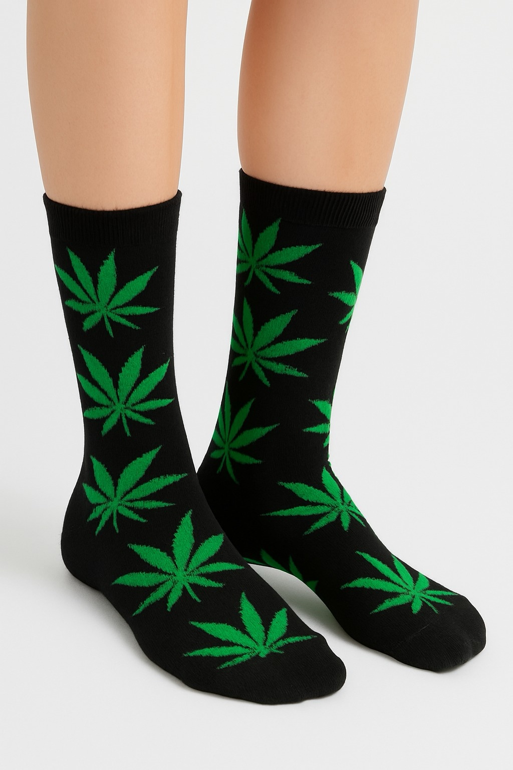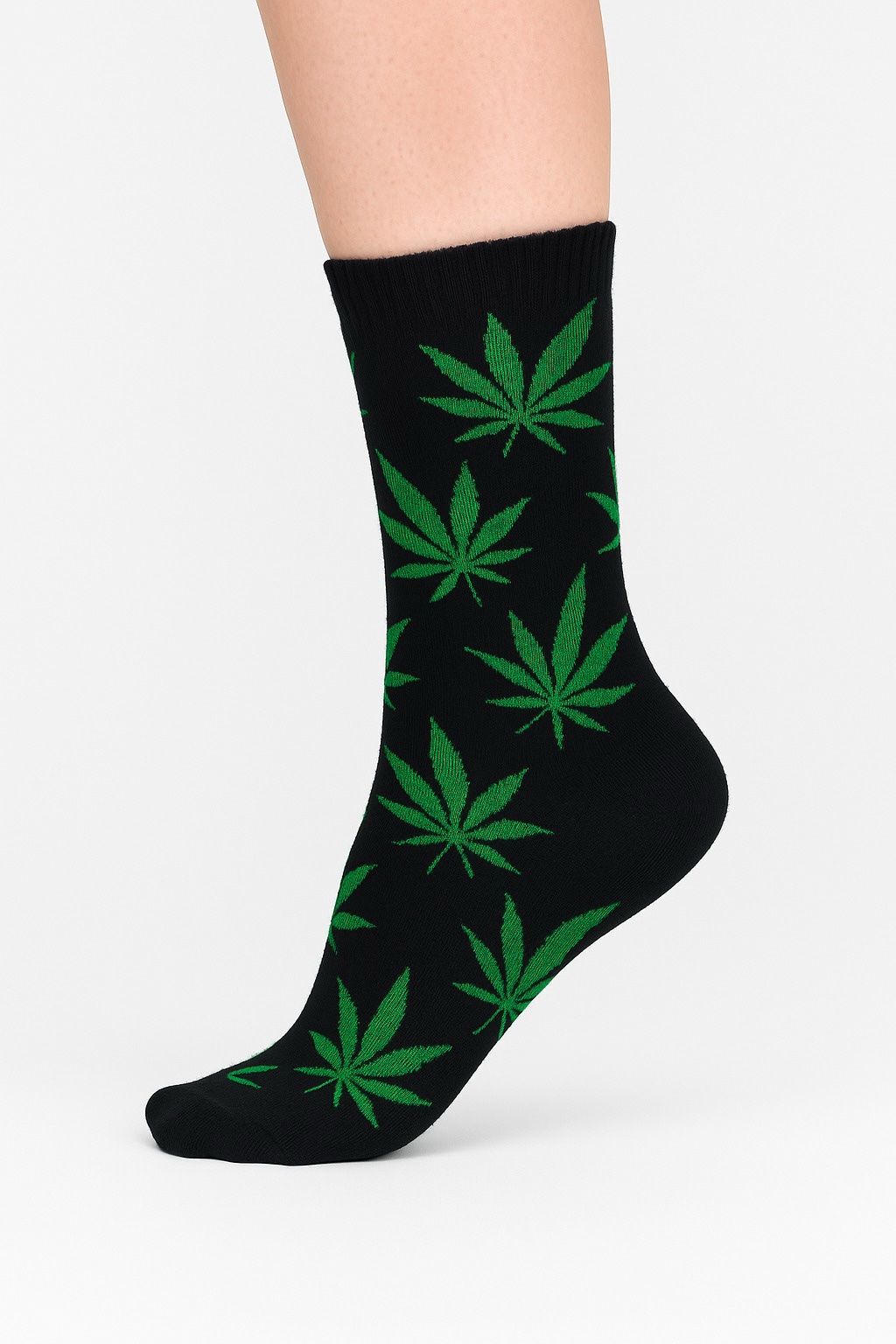 Siyah Yeşil Yaprak (Mari) Desenli Çorap